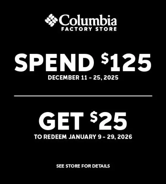 Get a $25 Columbia promotional gift card when you spend $125 between December 11th and December 25th, 2025. Find the perfect gift for everyone on your list at your local Columbia store, from cozy fleece and snow boots to must have accessories and the warmest jackets.